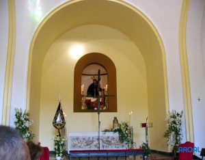 El altar que hemos colocada en nuestra Ermita es fijo, de una sola y magnifica pieza de piedra, color hueso, extraído para este objeto de las canteras existentes en Gilena, provincia de Sevilla. Mide 2,31 m. de largo, 93 cm. de ancho y 98 cm. De alto, Pesa 8000 kilos. Su volumen ajustado y exacto, ha ennoblecida el espacia principal de nuestra iglesia.