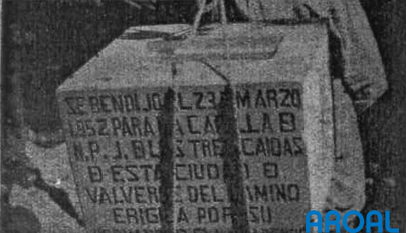 Pusimos la primera piedra el Domingo 23 de Marzo de 1952, Fiesta principal de la Hermandad. Estaba recién nacida la Primavera. Esta obra nuestra es también un rebrotar de fundadas esperanzas. Pasarán inviernos de dificultades, de luchas y tropiezos.Y el Otoño cansancio mustiara las ilusiones de alguno; echará al vuelo del viento el fracaso de los inconstante.Pero la primavera vendrá. Estad seguro, y del reseco tronco, como un puro milagro de Él brotará la nueva vida.