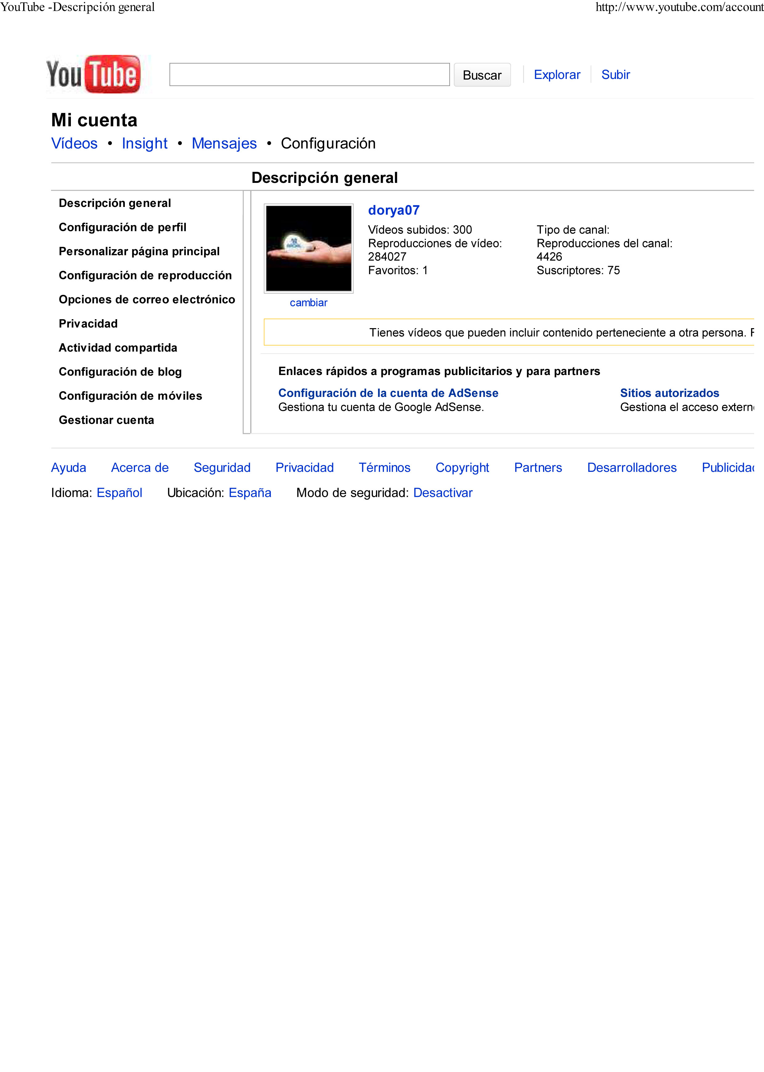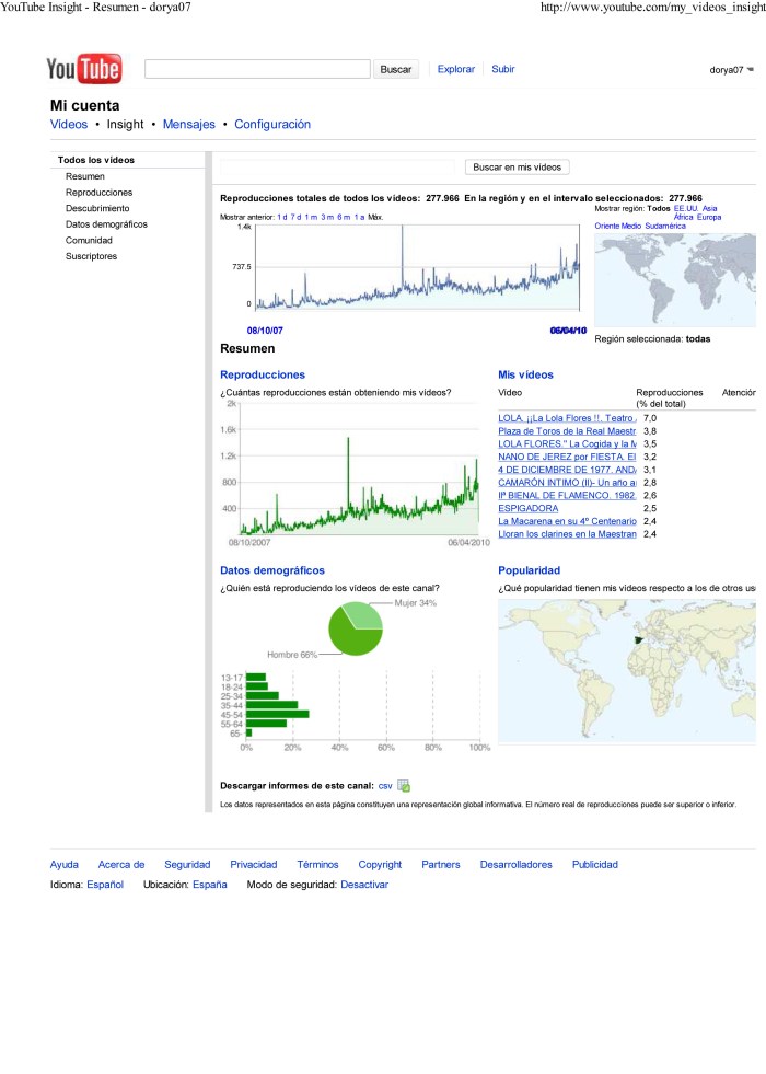 300 vídeos subidos a Youtube. 287.044 visitas hasta hoy.