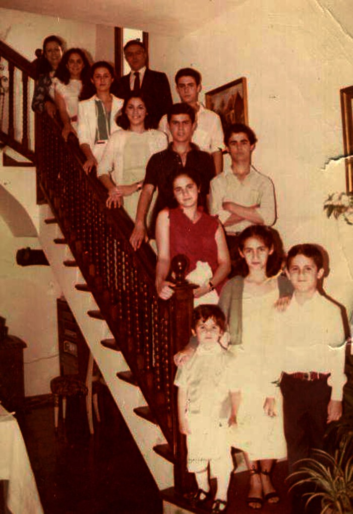 Antes,  se retrató con sus padres y sus cinco hermanas más sus cuatro hermanos, es el último en la foto o también; el primero si contamos de abajo arriba de la escalera.