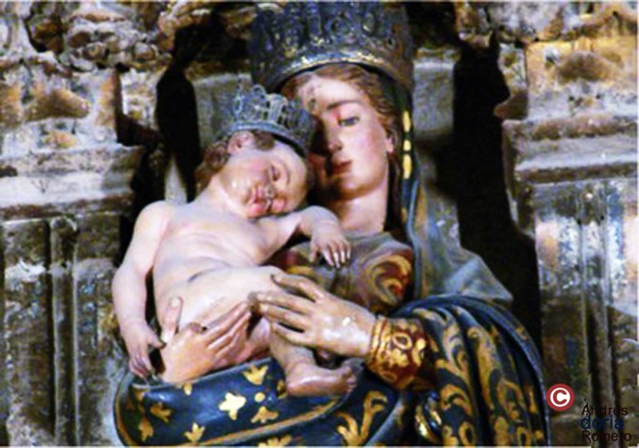 Alusión a la Madre como descanso y alivio de su Hijo. Se representa con el niño dormido en sus brazos. Abogada de Sevilla, venerada en la Catedral, Sacristía alta capilla nº 13, en el plano de la Catedral, frente a la Capilla de la Virgen de los Reyes, llamada también «Norabuena-lo-Pariste» o sólamente Virgen del Reposo.