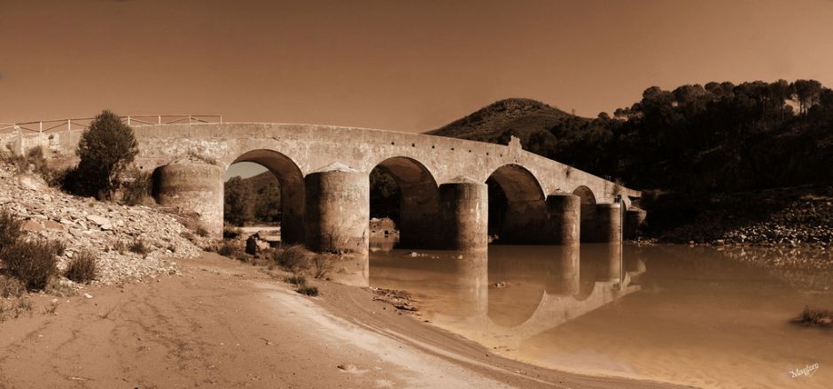 “Este camino sale de Valverde por entre los cercados de tapial que hay yen su circuito y se dirije por el poniente subiendo y baxando suaves cerros de buen piso, hasta distancia de media legua en que empieza a subirse la sierra más agria, pasando por una dehesa de encinas poco poblada y dexando a la derecha un pequeño caserio, desde donde continua progresivamente más áspera, siempre subiendo hasta el rio Odier, en cuya altura hay un desfiladero que serpentea la sierra hasta baxar a la Coronada, en donde hay un puente de cinco ojos con sus correspondientes talamares, todo de mampostería y bien acondicionado. Las orillas del rio Odier son escarpadas, y presentan una muy buena posición pero tienen el defecto que el poco caudal de agua que trae el rio principalmente en verano, lo hace vadeable por derecha e izquierda del puente, a larga distancia de él, y a sus inmediaciones.