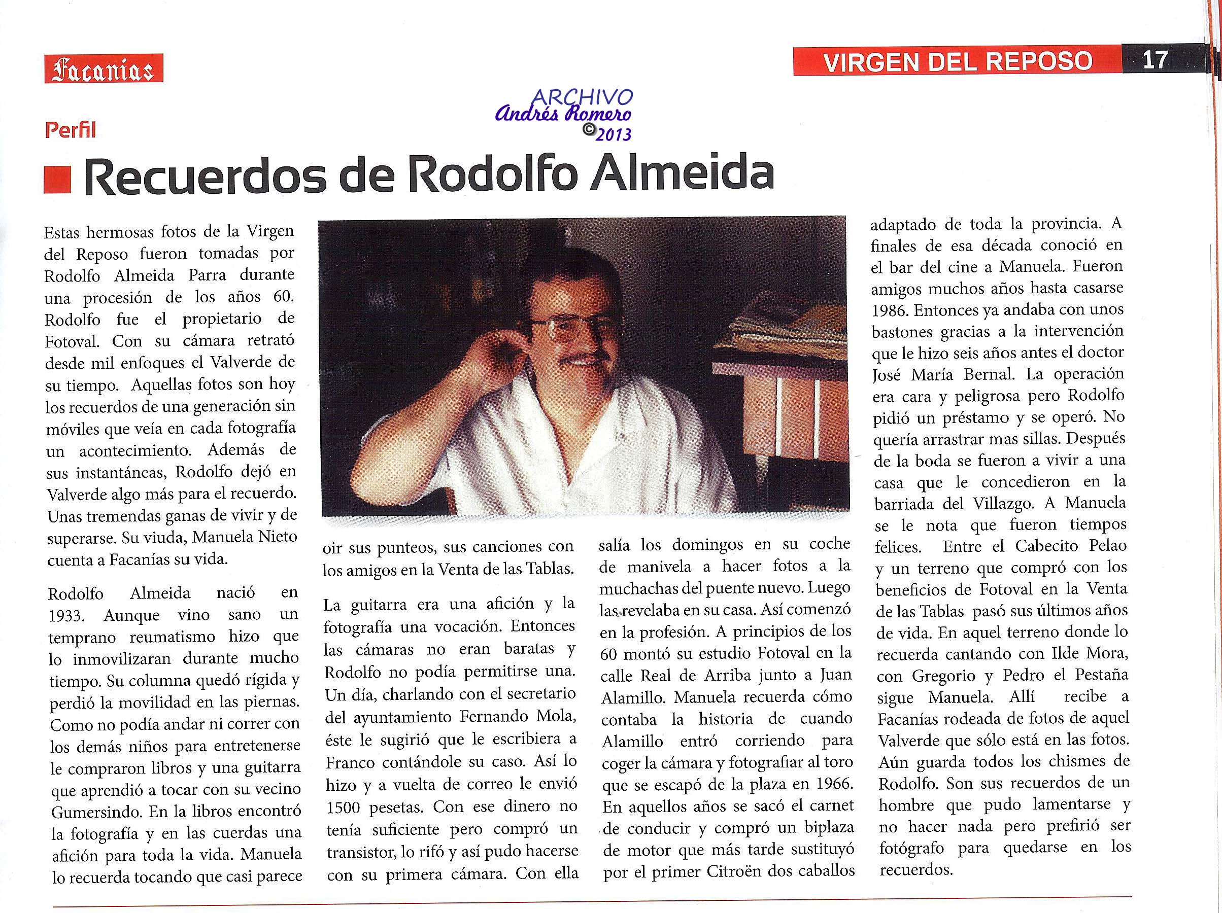 Gracias a Manuela Nieto, su viuda, que en Facanías del pasado Septiembre , paginas 16 y 17, publicaba un collage de 8 fotos de Rodolfo Almeida junto con una semblanza de su personalidad.