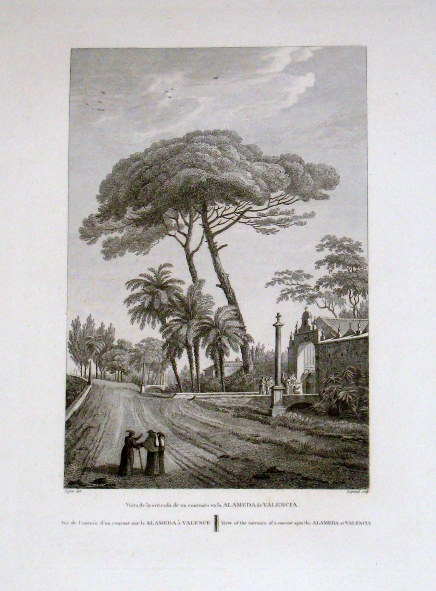 El autor se refiere también a las calles del paseo, por donde pasean las damas, así como a las estatuas de mármol blanco de Felip V, de su esposa Isabel de Farnesio y de Lluís I, situadas sobre columnas de jaspe, y a los escudos heráldicos de Felip V, de la ciudad de Valencia, del capitán general marqués de Villadarías, del intendente y del gobernador, que ornaven las torres.